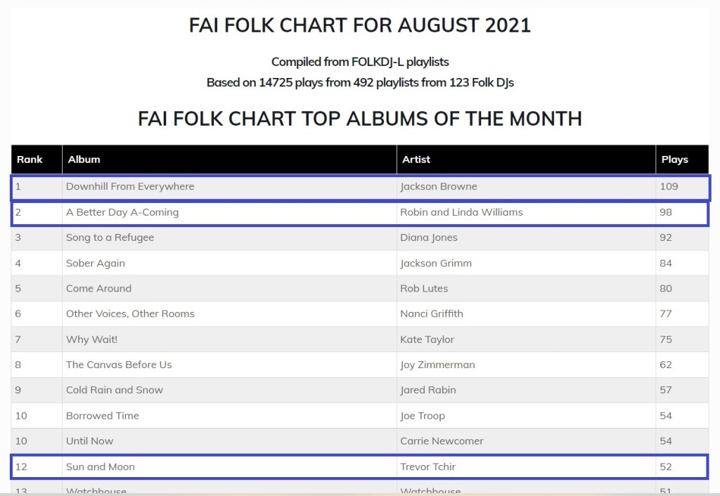 Veterans take first and second spots on the Folk Alliance International Album Chart for August