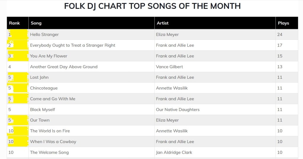 Folk Alliance International Folk Chart Top Songs